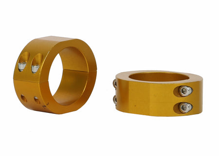 To suit 38mm diameter sway bars - the DIY (Do It Yourself) alloy lateral locking system can be utilized on both factory and more importantly aftermarket sway bars. The locks are easily installed on car with no need to remove the sway bar to install. They are mounted directly next to the sway bar mounting points and prevent shifting or sideways movement of the sway bar under lateral (cornering) loads. This results in improved sway bar effectiveness whilst preventing fouling of the sway bar on near by ch assis and steering components.