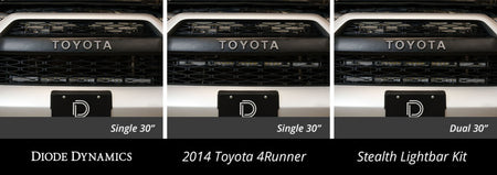 Features Direct fitment compatible with Toyota 4Runner 2014-2019 Allows you to mount one or two 30in light bar(s) in the lower grille opening CAD-designed for perfect fitment and OEM-like appearance Utilizes existing mounting points for easy installation - no cutting or drilling required Overview Perfect Fitment. The Stealth LED Lightbar Kit compatible with Toyota 4Runner 2014-2019 from Diode Dynamics allows you to mount either a single SS30 Stage Series 30in LED Light Bar or dual Stage Series 30in LED Light Bars behind the factory grille. These application-specific brackets were CAD-designed to install using factory mounting points. No cutting or drilling required! Choose your look. The brackets included with this kit were designed for full customization. They feature multiple mounting holes, so you can mount a single 30in light bar or dual 30in light bars behind your grille and achieve the look you're after. Designed For Performance. Using optical simulation modeling, Diode Dynamics Stage Series LED light bars have been designed for maximum functionality, with compact size, custom-engineered TIR optics, and a useful beam pattern, all in a highly durable package. Our light bars shine light in a highly functional and useful beam pattern, much more focused than older LEDs on the market. What's Included Two (2) application-specific SS30 brackets compatible with Toyota 4Runner 2014-2019 Mounting Hardware Installation Guide