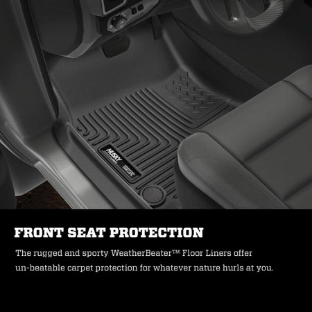 The original all-weather liner is ready, come hell or hot coffee. The Weatherbeater?s construction is a no-slip zone with zero edge curl, and its Stay Put Nibs keep it firmly anchored underfoot. It stands up to chemicals like gas, oil and battery acid, and stays tough and flexible, even under extreme temperatures. Its laser-scanned, FormFit Design? gives your truck, van or SUV an ultra-clean look with easy cleanup to match, while its patented, FormFit Edge? keeps spills contained, carpets unstained. It?s unbeatable Husky protection for life, warrantied the same. Proudly made in the USA.