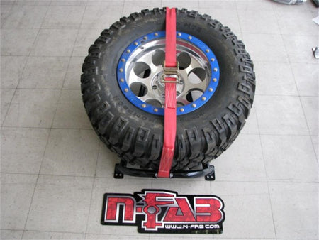 N-Fab Bed Mounted Tire Carrier Universal - Gloss Black - Red Strap