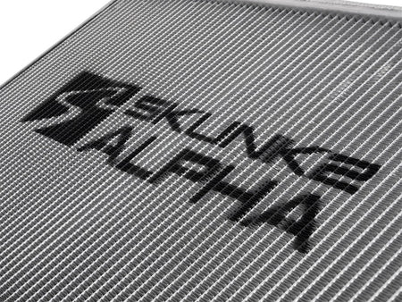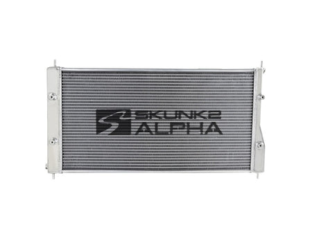 Skunk2's all-aluminum, full-size Alpha Series Radiator for the BRZ/FRS is a direct-fit upgrade designed to dramatically increase both cooling efficiency and engine performance. Alpha Series Radiators are manufactured from lightweight and durable aluminum, feature 100-percent brazed cores, and include polished end tanks with Skunk2's signature Alpha logo embossed along each side. Each Alpha Series Radiator features a dual-core design, high-efficiency fins for maximum cooling capabilities. Each Alpha Series Radiator also includes provisions for the OEM cooling fan and OEM-compatible, 1.5- in. inlets and outlets. Skunk2's commitment to producing high-quality components means that each Alpha Series Radiator meets or exceeds original equipment manufacturer standards, that each radiator may be installed without modification to the vehicle, and is compatible with OEM hoses, cooling fans, and shrouds. (Note: Some engine swap applications may require custom radiator hoses and/or cooling fans.) Skunk2's Alpha Series Radiators are the perfect addition to any high-performance vehicle and are designed for the street, the track, or even OEM replacement purposes. Alpha Series Radiators are built to withstand harsh elements as well as against years of under-hood heat cycling. Each Alpha Series Radiator adheres to strict quality control standards and careful packaging, resulting in tubes and fins capable of optimal flow and efficient heat transfer.