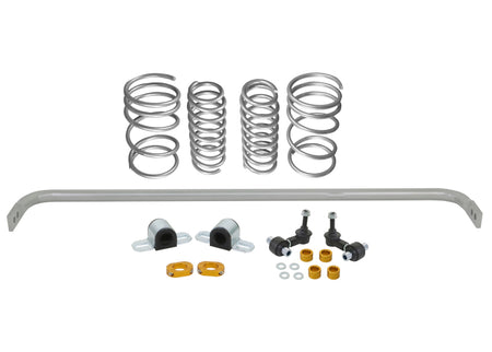 The ultimate entry level suspension upgrade! Performance, handling and comfort make up the Grip Series Stage 1 kit featuring Whiteline signature front and rear adjustable (where applicable) swaybars, drop links and performance lowering springs. Whiteline Springs deliver improved vehicle performance whilst maintaining safety and ride qualit y characteristics. This kit contains 4.2kg/mm (235lb/in) front rated springs that provide a 35mm drop while the 3.8kg/mm (213lb/in) rated rears deliver a desirable 35mm to the vehicle. Boasting a 24mm 2 point adjustable front sway bar and 24mm 2 point adjustable rear sway bar, the kit is completed with high quality sway bar links and mounting accessories that ensure optimum performance and ease of installation. Achieve perfect balance and precise tuning with this GS1 Kit.