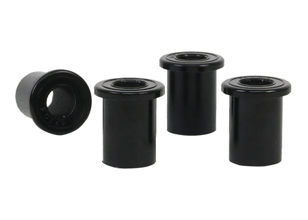 A critical service item for any leaf sprung vehicle. High kilometres and heavy load carrying causes excessive wear on rubber bushings. Whiteline's signature black bushings are made tough and offer outstanding abrasion resistance, high load bearing capability (4WD's, utes and towing), flexibility, increased tensile strength and chemical resistance to oil, grease, ozone and weathering.