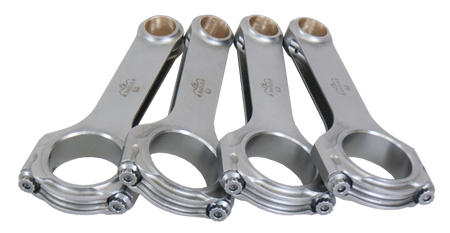 Eagle's 4th Generation H-Beam rods are forged from ASME certified 4340 steel in a two-piece forging and feature a fully machined and shot-peened surface. Eagle's 4th Generation design features thicker beam webbing for increased power handling capabilities, Increased beam and cap contact area and shoulder area to inprove bore stability under high load, and new small end profile to reduce reciprocating weight. Sizing is held to exact tolerances. Sold as a weight-matched set. Equipped with ARP 2000 bolts. Recommended for competition use.