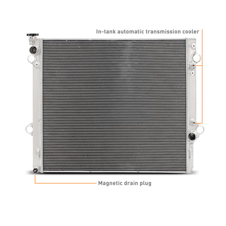 The 2003-2009 Toyota 4Runner V8 is known for its ruggedness, reliability, and off-road capability, but as they grow older the stock parts are starting to show their age. Over time, the factory radiator can develop issues such as leaks, corrosion, or clogging. Upgrading to a new Mishimoto performance aluminum radiator can prevent these problems before they occur, saving you from potential breakdowns on the trail. For those who use their 2003-2009 Toyota 4Runner for off-roading, this radiator can handle the additional strain and heat generated during these activities, providing better reliability and performance in rugged conditions. Our direct-fit radiator features a 40mm thick core for increased cooling capacity. Constructed entirely from aluminum with durable, TIG-welded end tanks, it includes an efficient in-tank liquid-to-liquid stacked plate transmission cooler for optimal transmission fluid temperature control. The radiator also comes with a magnetic drain plug to capture metallic debris in your cooling system and is backed by the Mishimoto Lifetime Warranty for peace of mind.