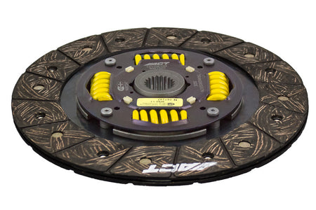 3001503 is a performance street disc and the most popular disc purchased. It features premium organic materials with high copper content for better heat transfer. Performance street discs allow for quicker shifting and smooth engagement. These discs feature a reduced marcel for faster shift action to complement ACT pressure plates. ACT spring-centered assemblies use bushings and cone springs similar to factory clutch discs. This creates frictional dampening, which improves clutch life and reduces noise. Quiet operation with increased strength and reliability.
