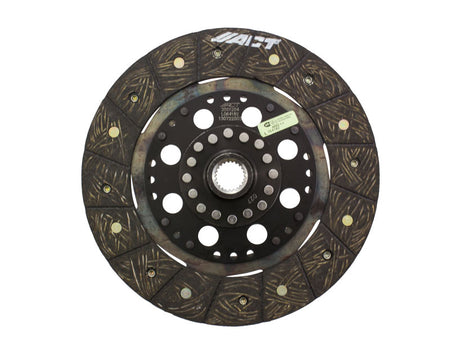 3001204 is a street rigid disc featuring premium organic materials with high copper content for better heat transfer and steel-backed lining for greater burst strength and durability. These discs are modified with reduced marcel for faster shift action to complement ACT pressure plates. The chrome-moly hub is heat-treated for strength and durability. Rivet design and materials are carefully selected for maximum strength. Lightweight, solid-hub design allows for quicker shifting and engagement. ACT's street rigid-hub discs provide race-proven performance with street manageability.