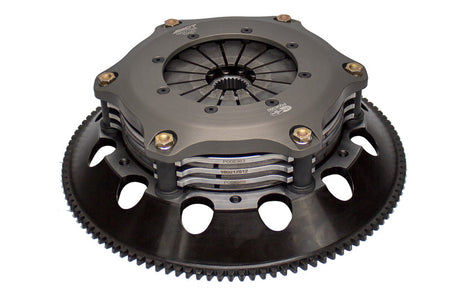 T1R3-T01 race, triple disc kits are race-ready for the serious enthusiast who needs a direct bolt-in kit, requiring no additional modifications. ACT's sintered iron race discs offer the highest torque capacity of all ACT race discs and have ultra-high heat capacity. All ACT triple disc kits include a CNC-machined and dynamically balanced flywheel for trouble free use. All kits undergo an exclusive four-stage, heat-treating process on all diaphragms. ACT triple disc kits include a pressure plate, three discs, two floaters, and flywheel. Some kits may include a pilot bearing and release bearing. ACT Triple disc kits meet SFI Specification 1.2.