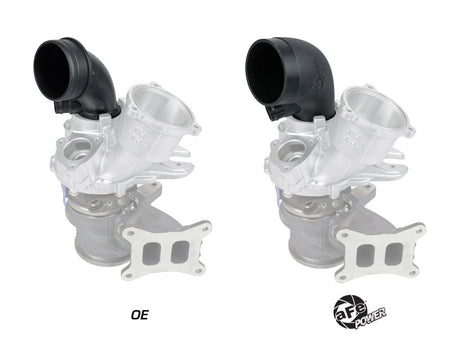 This turbo inlet is the perfect addition to your aFe air intake system. It removes restriction of the factory turbo inlet and guarantees increased air flow for maximum power. It provides a smooth transition for the air from the aFe air intake tube to the turbo with minimum restriction. The cast aluminum design has CNC machined ends for a perfect fit and finish. The part is anodized black for durability and a stealthy appearance. This turbo inlet utilizes a flexible silicone coupling that is reinforced with two layers of polyester material, making it resistant to wear and deterioration. The silicone coupling mates directly to the aluminum turbo adapter and the aFe air intake tube. All necessary clamps are provided. This turbo inlet utilizes the factory O-Ring and screw and comes with the necessary clamps and coupler to fit perfectly with your aFe air intake system.