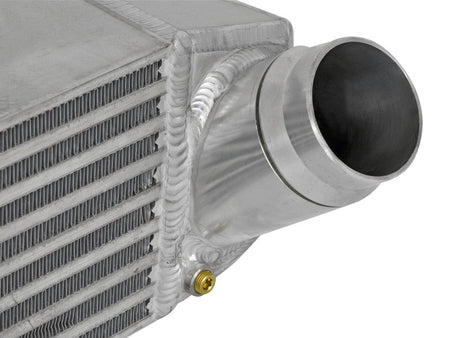 End Tanks: The unique BladeRunner end tanks are constructed out of 3/16" thick aluminum plates and include two 1/8" NPT ports for sensors or water-methanol injection. 5" Bar and Plate Core Design: The use of the bar and plate core design allows for greater airflow and increased heat dissipation over the much smaller tube and fin design used by the factory. TIG-Welded: 100% TIG-Welded inside and out by a certified craftsmen for strength and durability. TIG-Welding provides the strongest welds while reducing stress cracks. Pressure Tested: The BladeRunner Intercooler is test pressure rated at 200psi. Mandrel-bent Tubing: Constructed of 2-1/2" to 3" mandrel-bent aluminum tubing and powder-coated wrinkle-black for heat and corrosion resistance. The smooth transition mandrel bends decrease turbulence which increases horsepower and torque. The high-temp wrinkle-black powder-coating insulates the tubes from engine heat and protects them from corrosion. aFe Badging: Unique aluminum laser-cut aFe Power logo plate is welded-on for an aggressive style. Perfect Fit: Includes stainless steel clamps for a leak-free seal and heavy-duty 5-Ply reinforced silicone coupling for strength.