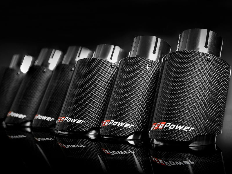 aFe MACH Force-Xp 409 SS Clamp-On Exhaust Tip 2.5in. Inlet / 4in. Outlet / 7in. L - Carbon