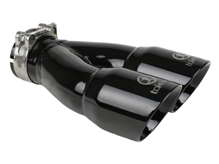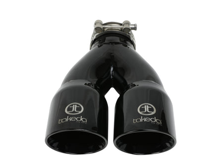 aFe Takeda 2.5in 304 Stainless Steel Clamp-on Exhaust Tip 2.5in Inlet 3in Dual Outlet - Black