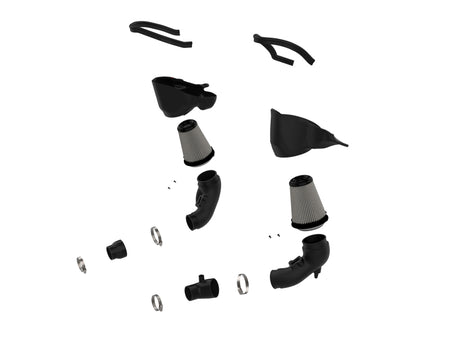 These 360-degree radial flow air filters feature our oil-free Pro DRY S media with three layers of synthetic media for maximum convenience. Their progressive layering provides great filtration efficiency and dust holding capacity, while not requiring the use of oils. This media is best suited for street use. Their inverted top makes for more filter surface area, resulting in longer service intervals. The included performance air filters are surrounded by open-element XLPE polymer (cross-linked polyethylene) housings that minimize warm engine air for maximum performance. The open design allows for easy viewing of the air filters and delivers an aggressive Air Intake sound. They utilize the vehicle's OE air inlets with no additional hardware. This system features high quality, computer-designed, dyno-tuned intake tubes to achieve maximum power gains while maintaining a perfect fit. Their XLPE material is heat soak resistant and extremely durable. The computer designed system utilizes factory mounting locations, minimizing the use of unnecessary hardware and ensuring a perfect fit every time. Its innovative design makes for a hassle-free, direct bolt-on installation process that requires no cutting or drilling. It features our patent pending filter-to-housing interface that uses half the number of parts of a traditional cold air intake system.