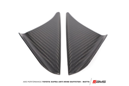 The AMS Toyota GR Supra Anti-Wind Buffeting Kit is engineered to eliminate the extreme wind buffeting condition that plagues every MKV Supra while traveling at speeds from 50-60 mph with the windows down. By installing this kit we were able to eliminate the problem by redirecting the airflow away from the cabin. There are no tools required and with the online installation instructions make this an easy and quick install. Offered in a matte or gloss carbon fiber finishes, these anti-buffeting deflectors look right at home on any build.