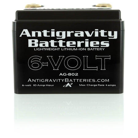 The Antigravity AG-802 is a 6-Volt 8-Cell Lithium-Ion battery in an extremely small case. This battery is made for those who ride classic older bikes that run the 6-Volt system. It is a very reliable, compact replacement for the bulky and large 6-Volts of the past.