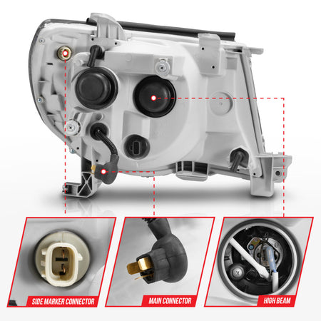 ANZO 05-09 Toyota Tacoma Projector Light Bar Style Headlights w/ C Light Bar