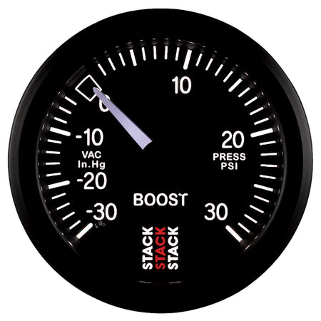 Autometer 52mm Stack Instruments -30INHG to +30PSI Mechanical Boost Gauge - Black