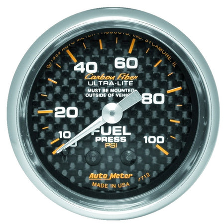 Autometer Carbon Fiber 52mm 100 PSI Mechanical Fuel Pressure Gauge