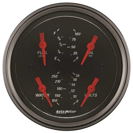 Autometer Designer Black 3.375in Quad Gauge - Fuel Level / Oil Pressure / Water Temp. / Voltmeter