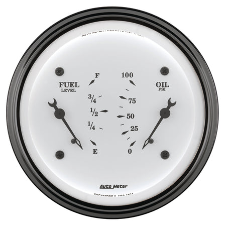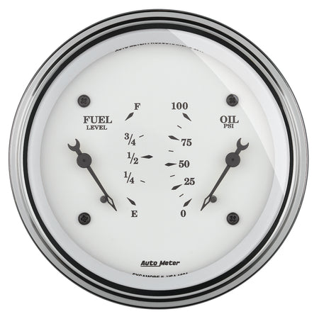 AutoMeter Gauge Dual Fuel & Oilp 3-3/8in. 0 Ohm(e) to 90 Ohm(f)& 100PSI Elec Old Tyme White