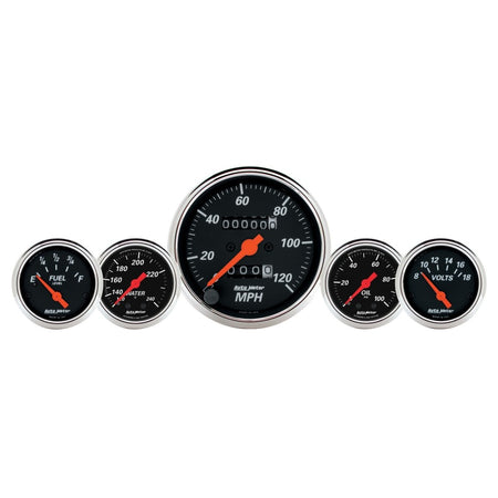 AutoMeter Gauge Kit 5 Pc. 3-1/8in. & 2-1/16in. Mech. Speedo. Wtmp & Oilp Designer Blk