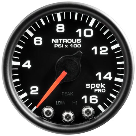 Autometer Spek-Pro Gauge Nitrous Press 2 1/16in 1600psi Stepper Motor W/Peak & Warn Blk/Blk