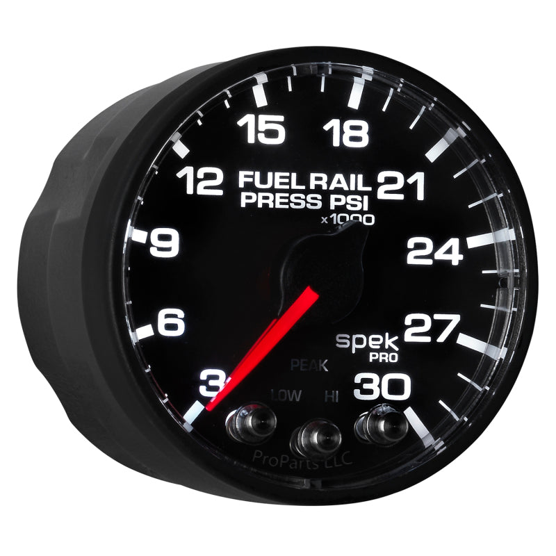 Autometer Spek-Pro Gauge Rail Press 2 1/16in 30Kpsi Stepper Motor W/Peak & Warn Blk/Blk
