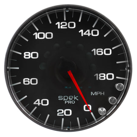 Autometer Spek-Pro Gauge Speedometer 5in 180 Mph Elec. Programmable Black/Black