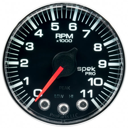 Autometer Spek-Pro Gauge Tach 2 1/16in 11K Rpm W/ Shift Light & Peak Mem Blk/Chrm