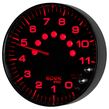 Autometer Spek-Pro Gauge Tachometer 5in 11K Rpm W/Shift Light & Peak Mem Black/Black