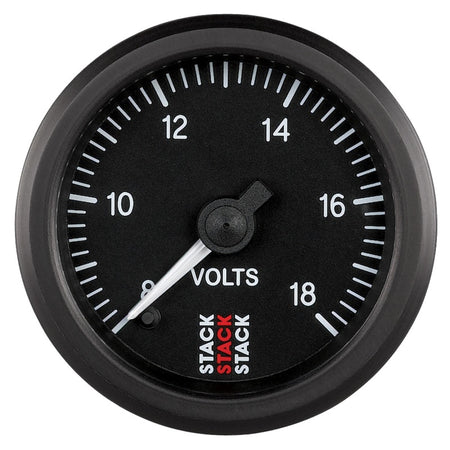 Autometer Stack 52mm 8-18V Pro Stepper Motor Battery Voltage Gauge - Black