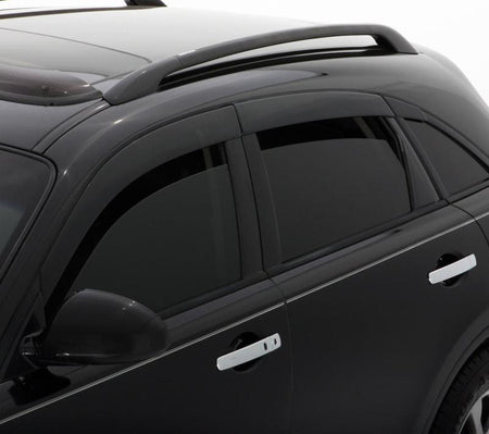 Lowest profile Ventvisor or side window deflector on the marketOur Low Profile Ventvisor or side window deflector is made in the USA, precision-engineered for an exacting fit with the broadest range of vehicle coverage on the market today. AVS Low Profile Ventvisors are designed to complete the look of your vehicle, adding subtle style while maintaining the functionality you desire from a side window deflector. The customized design easily mounts in minutes to the outside of your vehicle using pre-applied 3M automotive-grade adhesive. Its quick no-drill installation creates a perfectly snug and secure fit ? completely safe for car washes too!Keeps fresh air in and the rain out with styleThe Ventvisor, also referred to as a side window deflector, window shade or rain guard, allows fresh air to naturally circulate through open windows while keeping the rain out. Additionally, the product keeps the sun out of your eyes, enables fresh air circulation to eliminate stale, smoky air and allows you to keep your window cracked while parked, keeping the interior cooler.Great coverage and quality manufacturingAVS offers the most comprehensive Ventvisor vehicle application coverage for trucks, SUVs, CUVs, vans and passenger cars. All AVS Ventvisors are made of a higher-grade material than most, which means they hold their shape and are just the right thickness to be strong yet flexible for a perfect fit.& AVS Low Profile Ventvisors are available in a dark smoke and matte black finishes, and come with chrome trim on select models that match the trim of the vehicle door.& Best-selling line and backed by Limited Lifetime WarrantyThe AVS Ventvisor line is the best-selling line throughout North America. A Limited Lifetime Warranty protects your AVS Low Profile Ventvisor Side Window Deflector. Get a set today and start enjoying exterior style and constant fresh air right away.