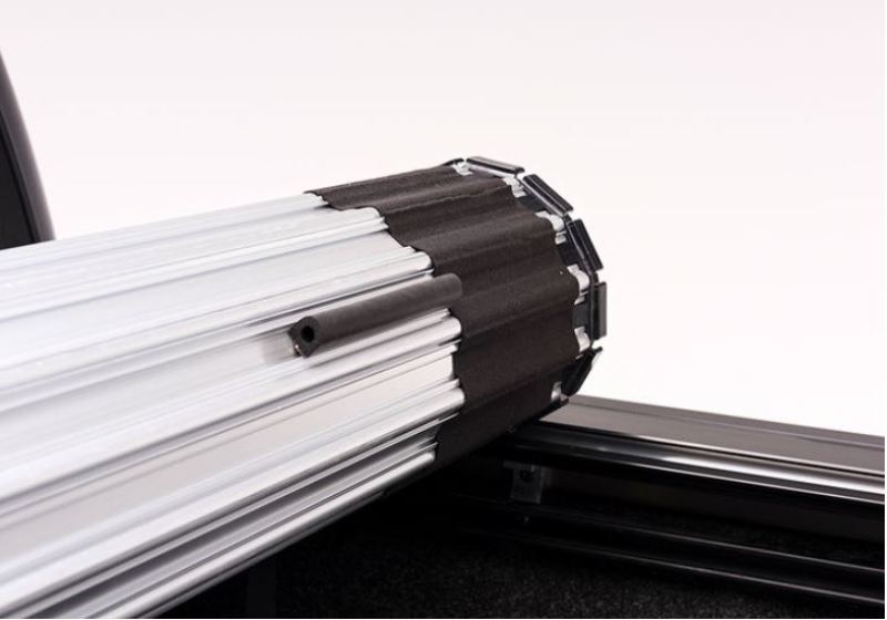 The Revolver X2 hard rolling truck bed cover features exclusive automatic rotational locking rails that secure the cover the entire length of the bed on each side. This hard aluminum roll-up cover easily rolls up with one-handed operation and allows use of every inch of the truck bed without blocking your rear window. This cover does it all with unrivaled strength, security and style.