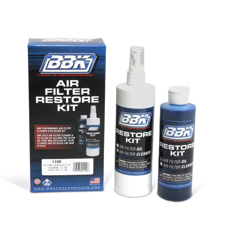 "Refresh, renew and restore your BBK air filter to like new with this BBK Cold Air Kit Air Filter Cleaner & Re-Oiling KitMake your filter look and perform like new, simply spray on the cleaning solution and allow to rest for a few minutes to do its work - then rinse off the dirt and debris with a water hose - then allow the filter to air dry completely and then finally re-oil the filter with the supplied BBK blue oil and wipe off any excess oil with a paper towel. Now your filter looks like new again and is ready to perform like new again and last thousands more miles."