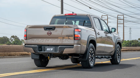 This 2.25" True Dual BORLA® Cat-Back™ system was designed specifically for the Frontier equipped with 3.8L engine. The muffler contains an internal H-Pipe for increased performance and improved sound. The system features an updated version (compared to 140919) of the classic S-Type sound that delivers a powerful performance sound with no drone. The system has 2 full Tail Pipes (Not a single tail pipe with dual tips). It features a single 4" round black chrome on T-304 stainless steel tip on each tail pipe. Using BORLA® Stainless Steel Polish p# 21461 is NOT recommended with these black chrome tips. We suggest cleaning the tips with hot water and a microfiber cloth. A system is also available with bright chrome on T-304 stainless steel tips. A High Clearance Climber / Rock Crawler system is also available. BORLA® Cat-Back™ & Axle-Back exhaust systems feature patented straight-through and multi-core technology to unleash hidden horsepower. Increased exhaust velocity adds power, driving excitement, fuel economy, and the distinctive BORLA® Sound of Power respected by motoring enthusiasts everywhere. Each system is built from premium, high-quality T-304 austenitic stainless steel, superior to T-400 series knockoffs (such as 409), to give you the absolute best in performance and durability. The entire system is made of T-304 stainless steel and utilizes computer numerical control (CNC) manufacturing techniques that ensure an accurate fit. All this is backed by our unsurpassed Million Mile Warranty.