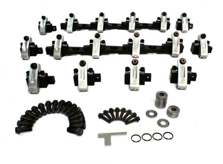 With a 2024 aluminum rocker and 8620 hardened steel shaft, this shaft-mount rocker system adds stability to the engine which frees up horsepower. This system features 1.7 ratio rockers for BBC w/ Brodix 2 Xtra heads.