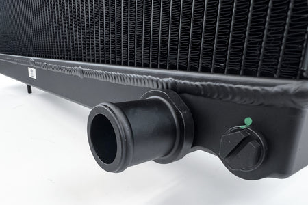The 2-Row 42mm core greatly not only increases the fluid capacity of the radiator, but also improves the cores ability to dissipate heat. CSF's Exclusive B-Tube Technology increases the heat transfer by approximately 15% over regular oval welded tubes. In addition, the super-efficient multi-louvered fins maximize airflow through the core for the best possible performance. More cooling rows also improve the overall efficiency of the radiator. More cooling tubes means more surface area for the coolant's heat to dissipate from. Each end tank is CNC machined billet aluminum giving them incredible strength and durability. CNC machining offers incredible precision and uniformity. The results are perfectly produced end tanks that perfectly match up with the ends of the 42 mm core. Hand TIG welding joins the tanks to the core creating the strongest radiator on the market for the R32 Skyline. Each radiator includes a 1.4 bar high pressure cap with an embossed CSF logo. High pressure radiator caps raise the boiling point of coolant. This helps protect the system from boiling over at higher operating temperatures. While the radiator is designed to keep the system from reaching such temperatures, it is always good to have extra protection for situations where the coolant gets too hot. The CSF #7217B comes in Black. Also available in a raw billet aluminum finish (CSF #7217).