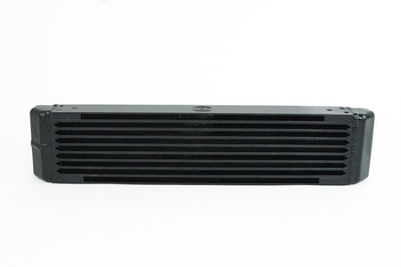 The unique design of CSF's oil cooler line has distinct advantages over conventional style oil coolers (plate-type/stacked oil coolers). The oil coolers can be placed in tighter spaces or different areas of the vehicle that don't have much vertical surface area. Longer rectangular sizes can also help with avoiding the stacking of too many coolers which may cause airflow issues to other components in the cooling system. Inlet/outlet port placement is much easier to route oil lines. Typical oil cooler lines have to be routed from different/opposite ends of the cooler often facing up or down. Usually one line has to run across from one side of the cooler to the other to then be routed together to the feed/return connection of the oil system. The CSF oil coolers are much more robust, durable, and can withstand a higher peak burst rate. This allows the cooler to be mounted in areas that might get high debris (front fascia, diff cooler, side vents, etc...). The CSF oil cooler is designed to withstand a tremendous amount of vibration and debris.