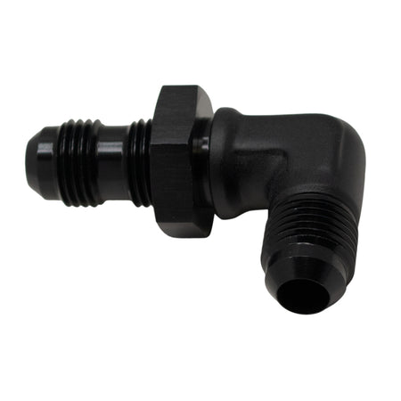 DeatschWerks 6AN Male Flare to 6AN Male Flare Bulkhead Adapter 90-Degree - Anodized Matte Black