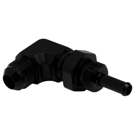 DeatschWerks 8AN Male Flare to 5/16in Male Barb Bulkhead Adapter 90-Degree - Anodized Matte Black
