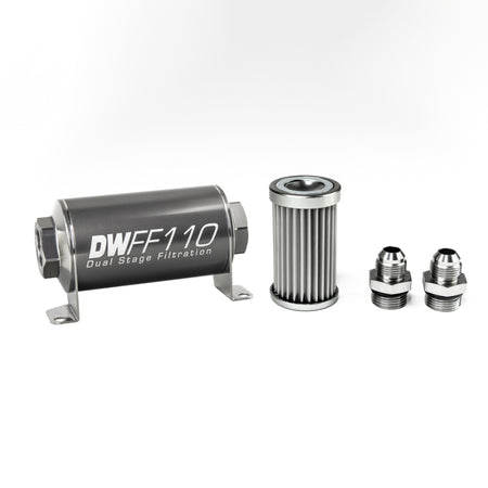 DeatschWerks Stainless Steel 8AN 5 Micron Universal Inline Fuel Filter Housing Kit (110mm)