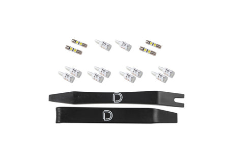 Features Add a modern, cool white appearance. Increased output with LED bulbs. Includes LED replacements for all interior incandescent bulbs. Plug-and-play, simple installation. Overview Increase your light output and add a modern appearance to your vehicle with our Interior LED Conversion Kit compatible with Chevrolet Equinox! Factory interior lighting leaves much to be desired with a dated appearance and lackluster performance. By replacing your outdated halogen bulbs with LEDs, you’ll give your vehicle a more modern appearance, and significantly increase the output of your interior lighting. Modern Appearance. The LED bulbs included in this kit feature a 6000K true cool white output without any blue - just like factory installed LEDs. This provides a serious upgrade in the overall appearance of your interior when compared to the factory halogen bulbs. All Diode Dynamics LED bulbs are tested in-house, so you know you’re getting consistent performance. Brightness. This kit is available in two levels of brightness, Stage 1 and Stage 2. Stage 1 gives your interior an ultra-modern appearance, while providing a slight increase in output compared to your factory lighting. Stage 2 steps things up with a significant increase in overall light output throughout the interior. Plug-and-Play. The LED bulbs included in this kit feature plug-and-play connections for simple installation. Our bulbs are not constructed with cheap connectors, so you don’t have to worry about them coming loose and falling out. Simply remove your factory bulbs and these will fit right in place! Two plastic trim removal tools are included to assist with installation. If any bulb does not light up when you turn it on, simply remove the bulb, rotate it 180 degrees and reinstall.