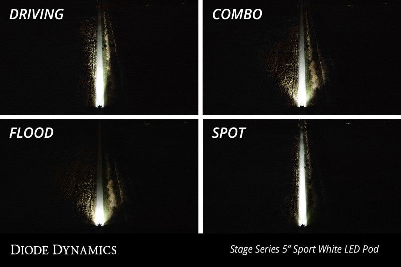 Features Engineered TIR (total internal reflection) optics Brilliant amber backlight color, for additional accent Built-in linking feature, build up to 50inch bar Torture-tested, heavy-duty construction Ultra-high intensity: shines almost mile away Assembled in USA Overview Introducing the SS5 LED Pod! Featuring the highest output intensity of any 5-inch LED pod on the market, these auxiliary lamps have been designed for maximum functionality, with patented technology and custom-engineered TIR optics, all in a durable package. Focused. Traditional optics like reflectors or simple lenses lose light internally and to glare, so not all of the light shines on target. Instead, the custom-engineered TIR optic in the SS5 collects all of the light from the LED, and directs it only where you need it, drastically reducing glare and improving total efficiency. Amber Backlight. The Stage Series 5inch LED Pod features an amber backlight illumination, perfect for an extra styling accent, or for more visibility when you’re not using the main beam. The SS5's backlight fully illuminates the TIR optic, providing unique accent lighting that you won't find on other LED pods. Due to the yellow lens, the Yellow SS5 is only available with an Amber backlight color. Simple connections. All SS5 LED pods feature an integrated and waterproof DT type Deutsch-style connector on the back, and come with a 6-inch pigtail with bare leads. For installation, you can wire yourself, or select an optional Diode Dynamics wire harness.