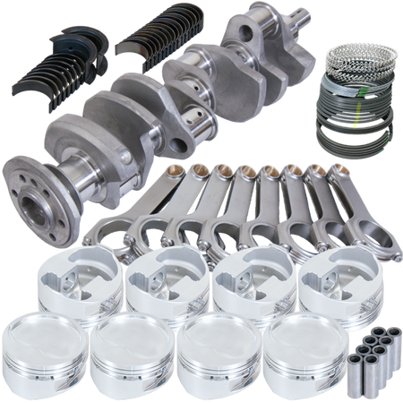 3.750" Forged 4340 Crank, 6.000" H-BEAM Rods,7/16" ARP L19 BOLTS,Forged 2618 JE -28CC FORCED INDUCTION INVERTED DOME 4.060" PISTONS,PLASMA-MOLY FILE FIT RINGS,KING XP Rod/MAIN BEARINGS.