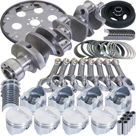BALANCED 3.750" Cast Crank,5.700" I-BEAM Rods,3/8" ARP 8740 BOLTS,HYPEREUTECTIC KB -7CC FLAT TOP 4.030" PISTONS,PLASMA-MOLY FILE-FIT RINGS,KING SI Rod/MAIN BEARINGS, DAMPER, AND 168 TOOTH FLEXPLATE.