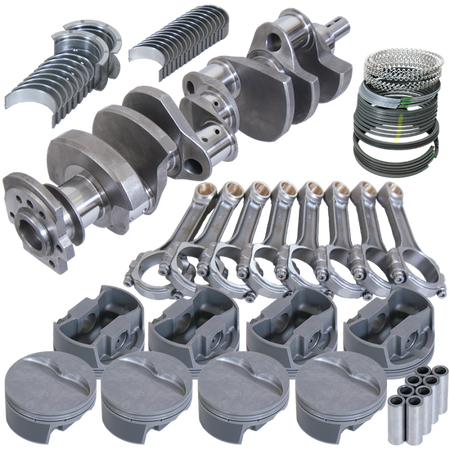 3.750" Cast Crank,6.000" I-BEAM Rods,3/8" ARP 8740 BOLTS,Forged 4032 MAHLE -5CC FLAT TOP 4.030" PISTONS,PLASMA-MOLY FILE-FIT RINGS,KING SI Rod/MAIN BEARINGS.