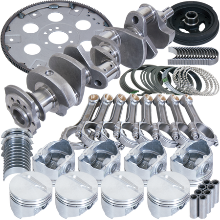BALANCED 3.750" Cast Crank,5.700" I-BEAM Rods,3/8" ARP 8740 BOLTS,HYPEREUTECTIC KB -7CC FLAT TOP 4.030" PISTONS,PLASMA-MOLY FILE-FIT RINGS,KING SI Rod/MAIN BEARINGS, DAMPER, AND FLEXPLATE.