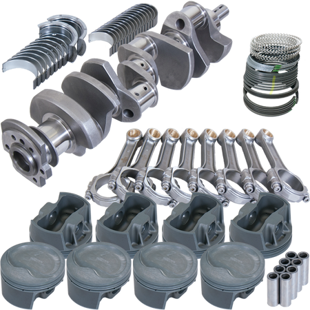 3.750" Cast Crank,5.700" I-BEAM Rods,3/8" ARP 8740 BOLTS, Forged 4032 MAHLE -20CC INVERTED DOME 4.155" PISTONS,PLASMA-MOLY STANDARD GAP RINGS,KING SI Rod/MAIN BEARINGS.