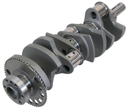 Eagle Billet 4340 steel crankshafts feature .125' fillet radiuses for superior strength so chamfered / narrowed bearings required, nitrided surface and micropolished. Center counterweighted for superior stability at high RPM and high power levels.