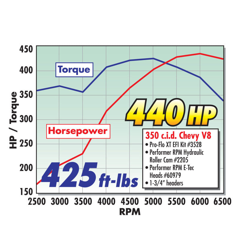 Edelbrock Rollin' Thunder Camshaft #2205 is designed for 283-400 V8 Chevy engines 1987-Later and produces optimum torque from the low-end to the mid-range. Rollin' Thunder camshafts should be matched with Performer manifolds for vehicles operating from off-idle to 5500 rpm. They are smooth idling cams for daily drivers, trucks, vans, RVs and 4x4s. You can expect a major improvement in throttle response and torque. In the manifold section you'll find torque graphs showing the power gains from Performer manifolds and Performer-Plus cams. All camshafts include flat tappet lifters (except for cams designed for use with stock roller lifters), assembly lube and instructions. This cam produced 440HP and 425 Ft Lbs of Torque when paired with Pro-Flo XT EFI system #3528 and Performer E-Tec cylinder heads #60975. Use with high stall torque converter and stock ratio rocker arms only. Camshaft specifications: - Intake duration: 234 Degrees - Exhaust duration: 238 Degrees - Intake lift: .539" - Exhaust lift: .548" - Lobe separation: 114 Degree - Intake Center Line: 110 Degree - Vacuum: 13"